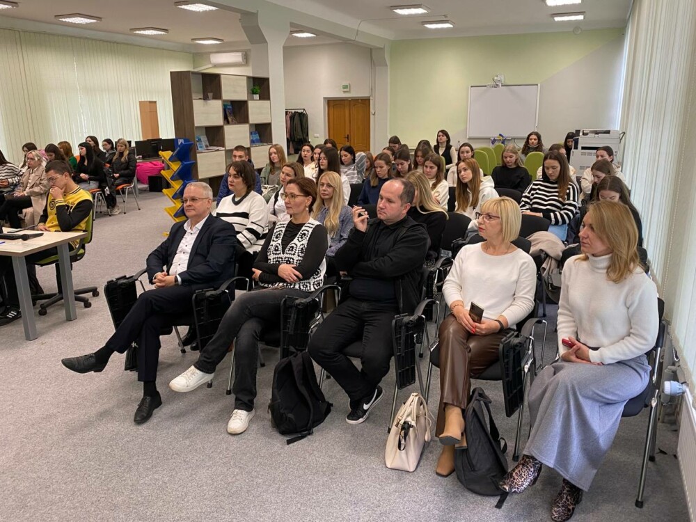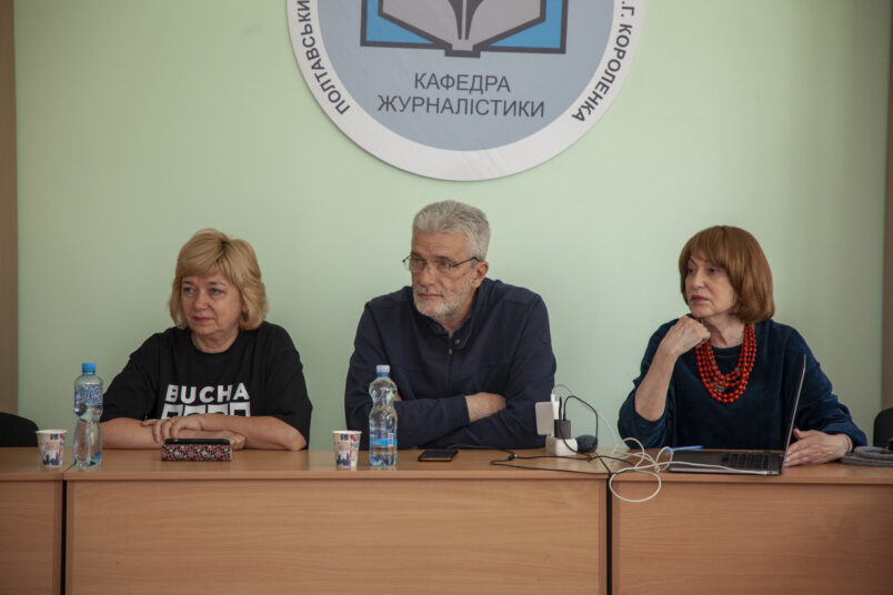 The lecture in Ivano-Frankivsk was about Ukrainian journalism during wartime, for students and professors of Vasyl Stefanyk Precarpathian National University. The one in Poltava was titled Regional Journalism: Traditions, Values, Nature in Wartime — for students and professors of the journalism department at Volodymyr Korolenko Poltava National Pedagogical University. Both events were attended not just by students, but also by journalists and local media managers.
