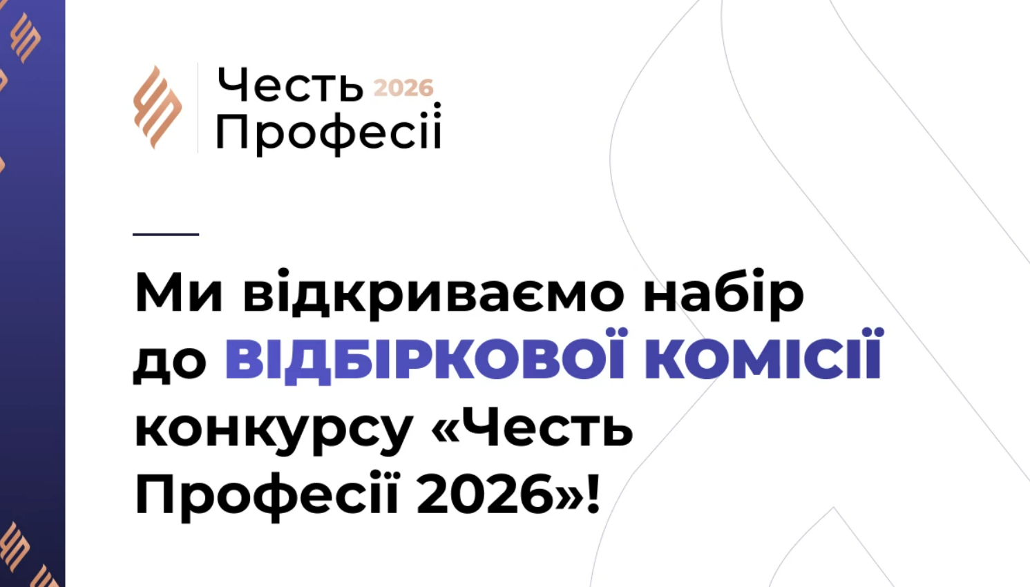 Організатори конкурсу «Честь професії 2026» оголосили про відкриття набору до відбіркової комісії. Це команда людей, які першими читають, дивляться і слухають подані роботи й допомагають сформувати список найкращих матеріалів року на першому етапі оцінювання. Пізніше ці матеріали оцінює журі конкурсу. Ознайомитися з положенням про Конкурс можна за посиланням.